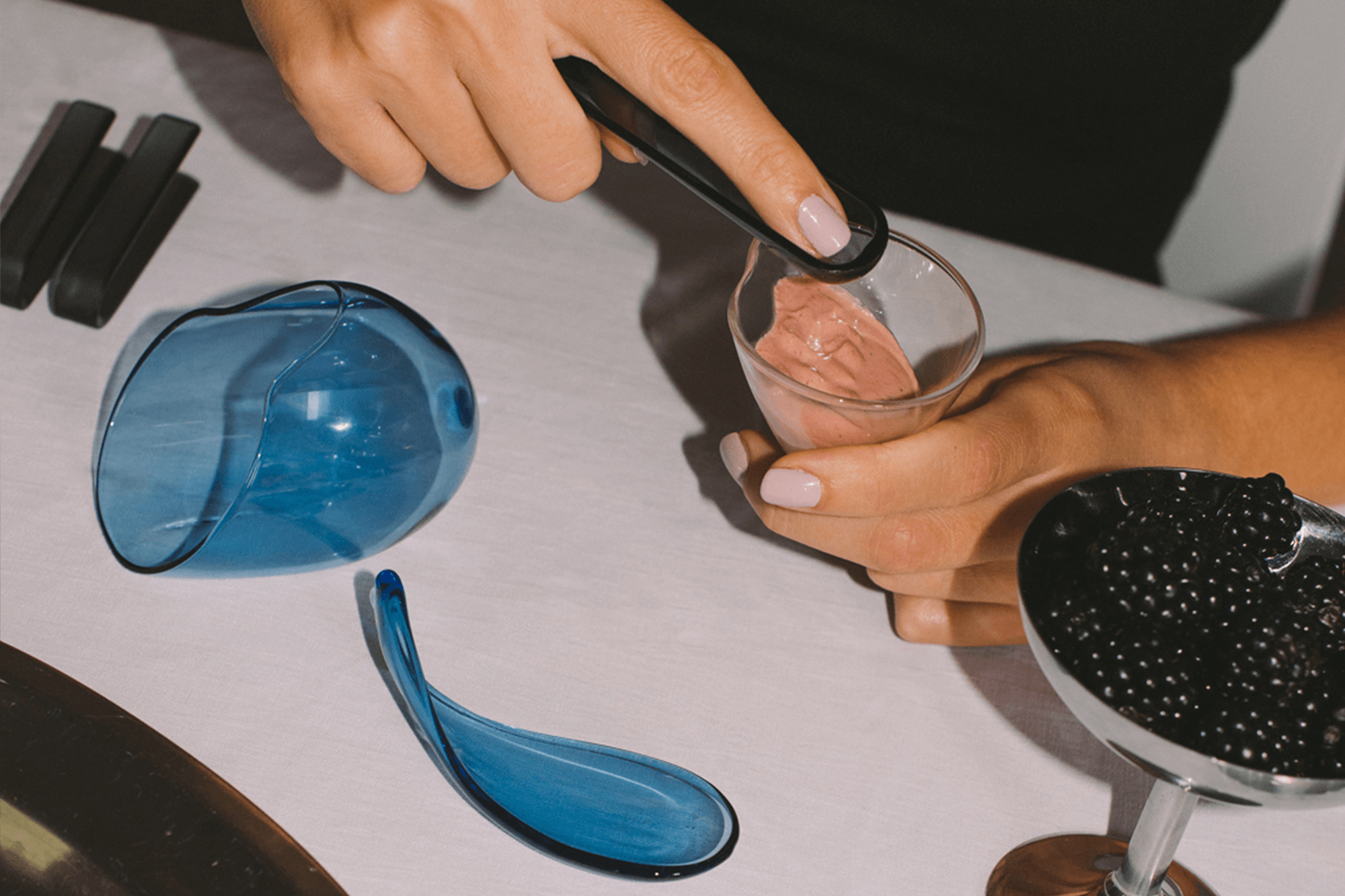 In an atmosphere of refined simplicity, glass is rediscovered as a daily, convivial material, delicately accompanying new rituals of sharing. The utensils break free from traditional forms to reinvent everyday gestures, opening up a new sensory experience of food. The event invites exploration and experimentation, where nature, form, and function blend to inhabit the table with lightness and authenticity.